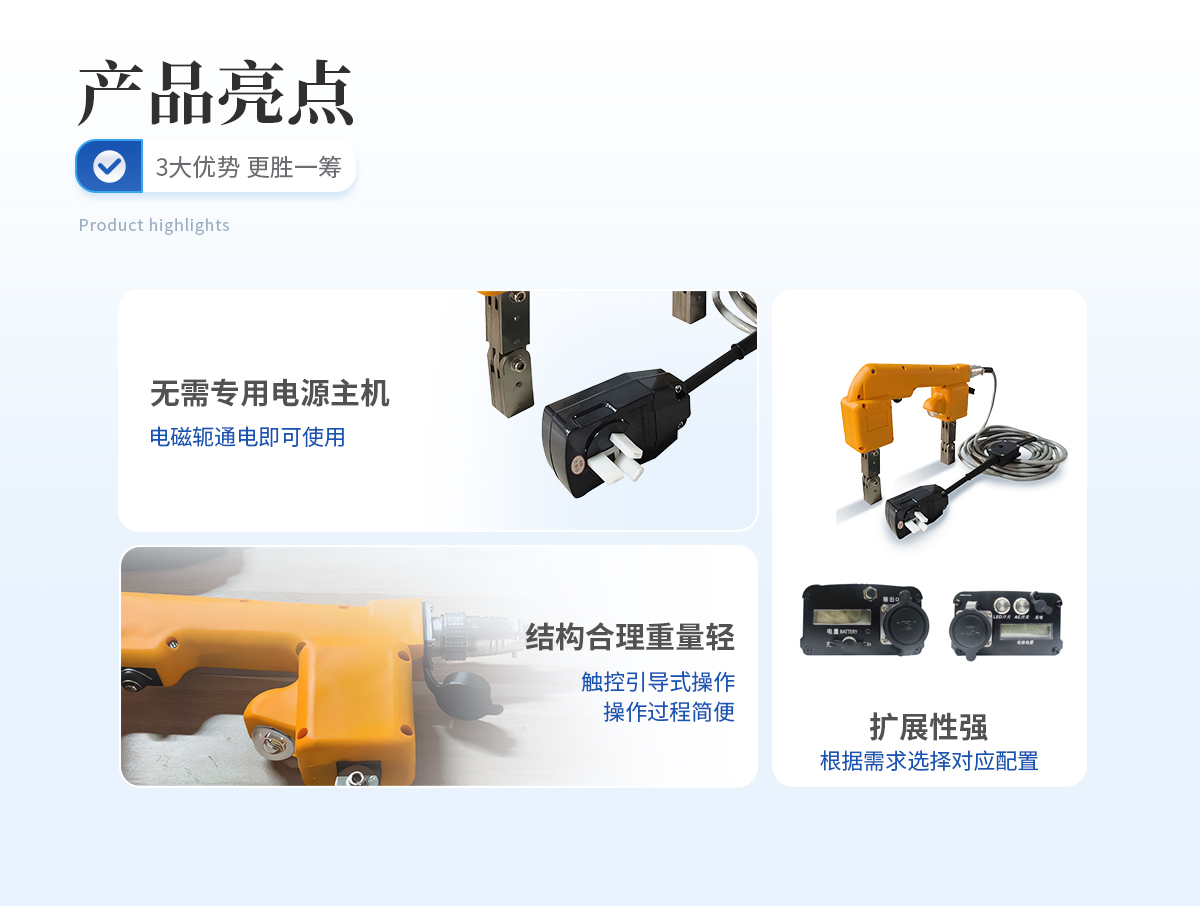 | 1、 無(wú)需專用電源主機(jī),電磁軛通電即可使用; | 2、 體積小巧,重量輕; | 3、 開(kāi)模制作,結(jié)構(gòu)合理,手感舒適; | 4、 磁軛標(biāo)配白光燈,可選熒光燈(不額外加費(fèi)用); | 5、 配專用儀器箱; | 6、 擴(kuò)展性強(qiáng),可根據(jù)需要增配對(duì)應(yīng)的專用電池包,通過(guò)專用電源來(lái)實(shí)現(xiàn)交流、直流磁化功能??蓾M足不方便拖電源線的場(chǎng)所使用。 |