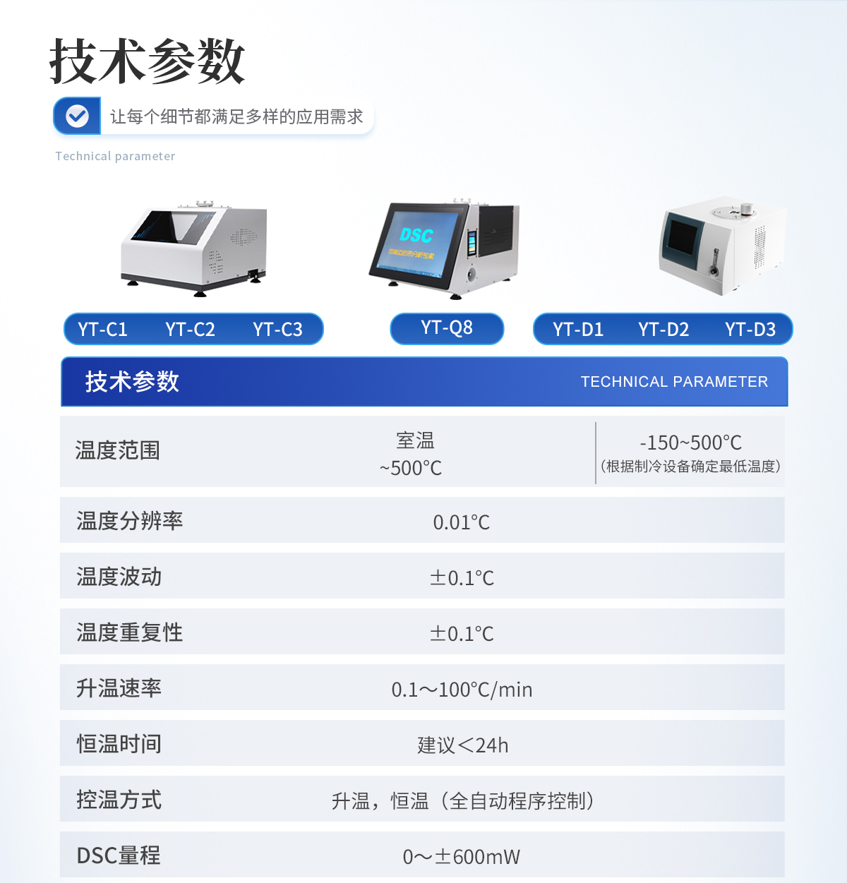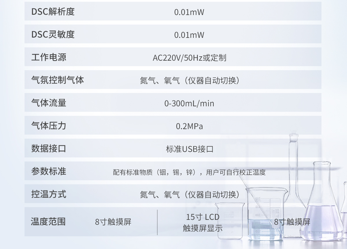 1.溫度范圍: 室溫~500℃ 2.溫度分辨率: 0.01℃ 3.溫度波動: ±0.1℃ 4.溫度重復(fù)性: ±0.1℃ 5.升溫速率: 0.1~100℃/min 6.恒溫時(shí)間:建議<24h 7.控溫方式:升溫,恒溫(全自動程序控制) 8.DSC量程: 0~±600mW 9.DSC解析度: 0.01mW 10.DSC靈敏度: 0.01mW 11.工作電源: AC220V/50Hz或定制 12. 氣氛控制氣體:氮?dú)狻⒀鯕猓▋x器自動切換) 13.氣體流量:0-300mL/min 14.氣體壓力:0.2MPa 15.顯示方式: 8寸 LCD觸摸屏顯示,超硬度儀器面膜設(shè)計(jì)。