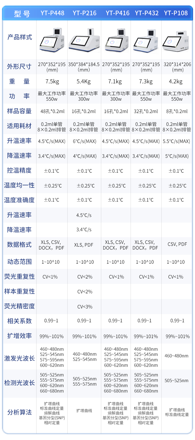 | 基本性能 | 外形尺寸:270*352*195 (mm) | 重量:7.1kg | 電源:220V | 功率:**工作功率300w | 操作系統(tǒng):自帶Android操作系統(tǒng) | 外接電腦:外接windows電腦(win7系統(tǒng)以上) | 系統(tǒng)語言:中英文實時切換 | 通信接口:方形USB | 操作環(huán)境參數(shù) | 操作環(huán)境溫度:18~35℃ | 操作環(huán)境相對濕度:0%~85% | 運輸及儲存溫度:-20~55℃ | 運輸及儲存相對濕度:0%~85% | 系統(tǒng)性能 | 樣品容量:16孔*0.2ml | 樣品容積:15~100ul | 適用耗材:0.2ml單管、8×0.2ml排管 | 控溫范圍:4~99℃ | 熱蓋溫度:30℃-108℃(默認105℃,熱蓋溫度可調(diào)) | 溫控方式:高性能進口半導體 | 梯度控溫:3模塊梯度控溫,**溫差支持35℃ | 升溫速率:4.5℃/s(MAX) | 降溫速率:3.4℃/s(MAX) | 控溫精度:±0.1℃ | 溫度均一性 :±0.25℃ | 溫度準確度:±0.1℃ | 操作功能:預設(shè)項目和分析參數(shù),操作簡單方便 | 報告:支持報告自定義模塊,16孔分項目打印 | 分析功能:具多重qPCR數(shù)據(jù)分析功能,可同時檢測4個檢測通道 | 斷電保護:可以一鍵重啟中斷的實驗 | 儀器信息:擁有故障記錄,分析,提示的功能,更方便遠程解決問題 | 分析算法:擴增曲線,標準曲線定量、熔解曲線,基因分型(SNP),相對定量 | 支持HRM檢測:支持 | 數(shù)據(jù)導出:可將實驗結(jié)果以圖形和表格的形式直接導出;詳細的數(shù)據(jù)報告內(nèi)容包括實驗條件,數(shù)據(jù)坐標和表格,數(shù)據(jù)分析參數(shù)。 | 數(shù)據(jù)格式:XLS, CSV, DOCX,PDF | TouchDown功能:支持時間和溫度遞增遞減模式 | 熒光檢測系統(tǒng)性能 | 檢測靈敏度:可檢測單拷貝基因 | 動態(tài)范圍:1~10^10 | 熒光重復性:CV<1%(使用某品牌試劑做16孔均一性實驗,16個孔的Ct差值保持在0.5以內(nèi),CV保持在1%以內(nèi)。) | 相關(guān)系數(shù):0.99~1(每種濃度3個重復,梯度曲線的相關(guān)系數(shù)>0.99,擴增效率保持在99%~101%之間) | 擴增效率:99%~101% | 可信度:區(qū)分1000與2000拷貝濃度差異 | 激光光源:大功率LED(免維護,壽命長) | 檢測器:高靈敏度光電傳感器 | 激發(fā)和檢測傳播介質(zhì):耐高溫專業(yè)導光光纖 | 激發(fā)光波長 :460nm~480nm , 525nm~545nm, 575nm~595nm ,600nm~620nm | 檢測光波長 :505nm~525nm , 555nm~575nm , 600nm~620nm , 660nm~680nm |