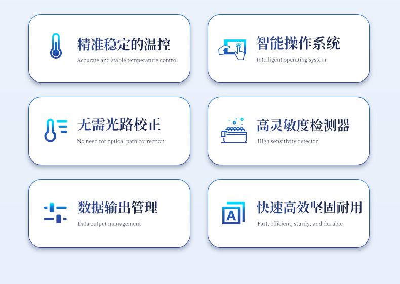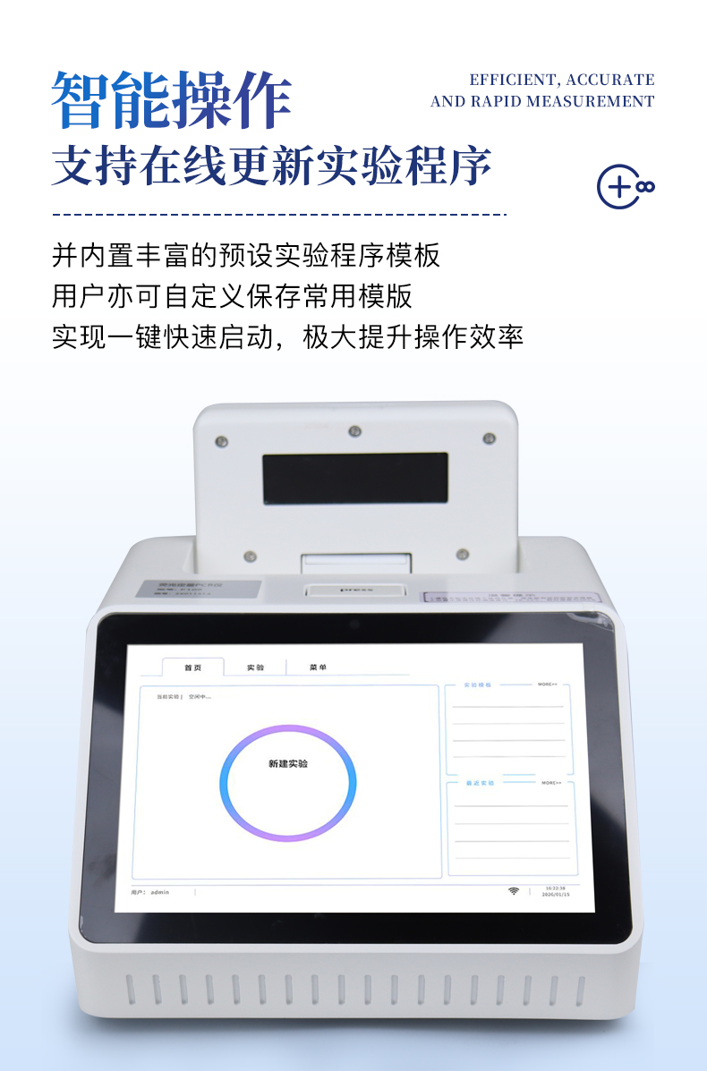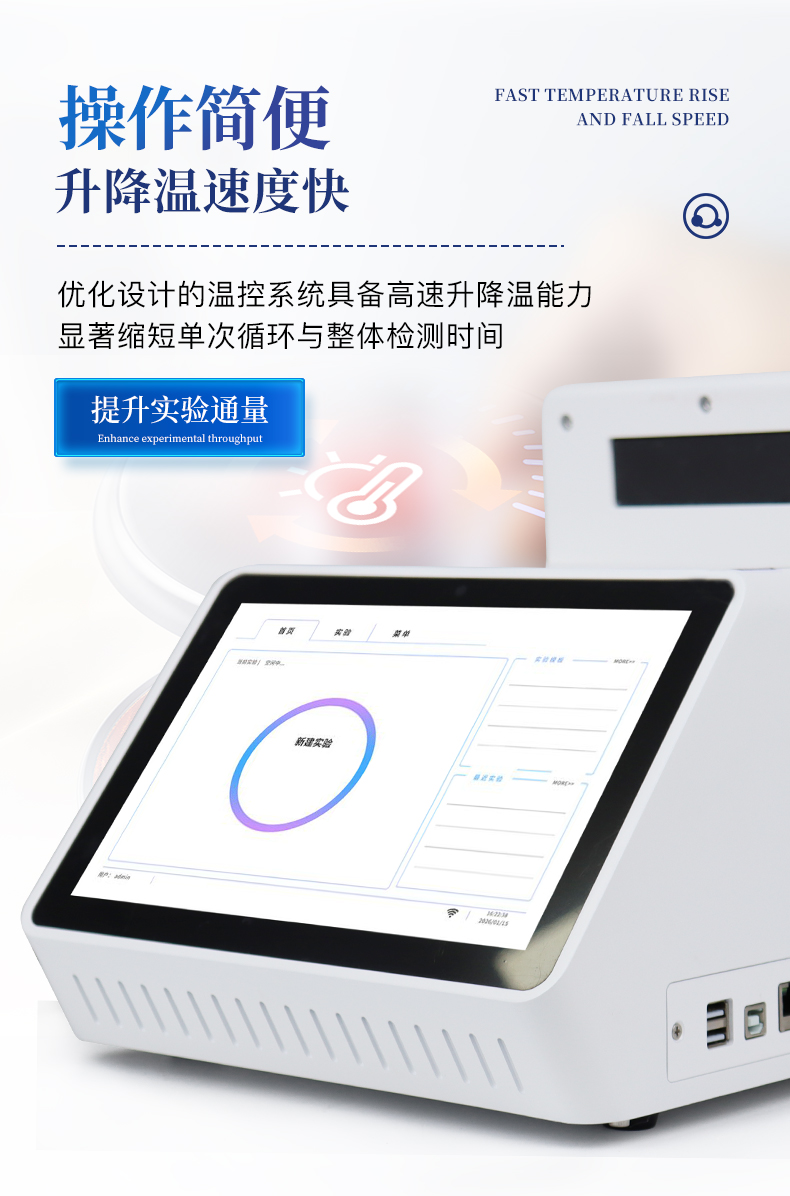 | 1.智能操作系統(tǒng),實驗盡在掌握 | A雙模式靈活控制:支持通過儀器觸摸屏獨立運行,也支持通過電腦軟件進行遠程控制與數(shù)據(jù)管理,適應不同實驗場景需求。 | B程序更新與預設:支持在線更新實驗程序,并內(nèi)置豐富的預設實驗程序模板,用戶亦可自定義保存常用模版,實現(xiàn)一鍵快速啟動,極大提升操作效率。 | C極簡啟動體驗(可選配):可定制集成攝像頭掃描系統(tǒng),用戶只需掃描樣品板或程序卡的二維碼,即可自動識別并調(diào)用對應實驗程序,簡化流程,避免人為設置錯誤。 | D操作簡單:無論是觸摸屏界面還是電腦軟件,均設計得直觀易懂,新用戶也能快速上手。預置常用程序模板,進一步簡化操作流程。 | 2.精準穩(wěn)定的溫控與光學核心 | A長久精準的溫控系統(tǒng):采用進口***TEC半導體制冷模塊,控溫精準(±0.1°C),孔間溫度均勻性**(≤±0.3°C)。系統(tǒng)穩(wěn)定性卓越,長期使用性能衰減小,校準周期長達數(shù)年,顯著降低維護成本與運營中斷。 | B免維護的靈敏光學系統(tǒng):配備4個獨立LED光源與4個獨立光電二極管檢測器,實現(xiàn)四通道熒光同步精準檢測。采用超長壽命進口光源,設計壽命期內(nèi)免維護,無需額外校準或更換,保障檢測結(jié)果長期一致性與高靈敏度。 | C卓越的數(shù)據(jù)質(zhì)量:實驗線性相關性高(R2≥0.999),重復性優(yōu)異(孔間CV值低),確保定量結(jié)果準確可靠,數(shù)據(jù)置信度高。 | 3.**便捷的數(shù)據(jù)與輸出管理 | A多重數(shù)據(jù)導出方式:支持通過USB存儲設備直接拷貝,或經(jīng)由Wi-Fi無線網(wǎng)絡傳輸數(shù)據(jù)至本地服務器或云端,方便靈活,滿足各類實驗室數(shù)據(jù)管理習慣。 | B豐富的報告導出與打?。褐С稚刹С龆喾N格式(如PDF、Excel)的實驗報告。儀器兼容USB熱敏打印機、藍牙無線打印機及常規(guī)A4打印機,可直接在儀器上或通過電腦一鍵導出并打印專業(yè)報告,便于結(jié)果存檔與即時分享。 | 4.快速**與堅固耐用 | A升降溫速度快:優(yōu)化設計的溫控系統(tǒng)具備高速升降溫能力,顯著縮短單次循環(huán)與整體檢測時間,提升實驗通量。 | B超長使用壽命:核心部件均選用工業(yè)級耐用材料與設計,整機運行穩(wěn)定可靠,致力于為用戶提供長久的投資回報。 |