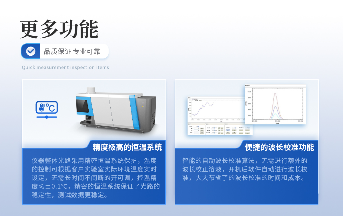 儀器整體光路采用精密恒溫系統(tǒng)保護,溫度的控制可根據(jù)客戶實驗室實際環(huán)境溫度實時設定,無需長時間不間斷的開可調(diào),控溫精度≤±0.1℃,精密的恒溫系統(tǒng)保證了光路的穩(wěn)定性,測試數(shù)據(jù)更穩(wěn)定。 9、靈敏度**的檢測器: