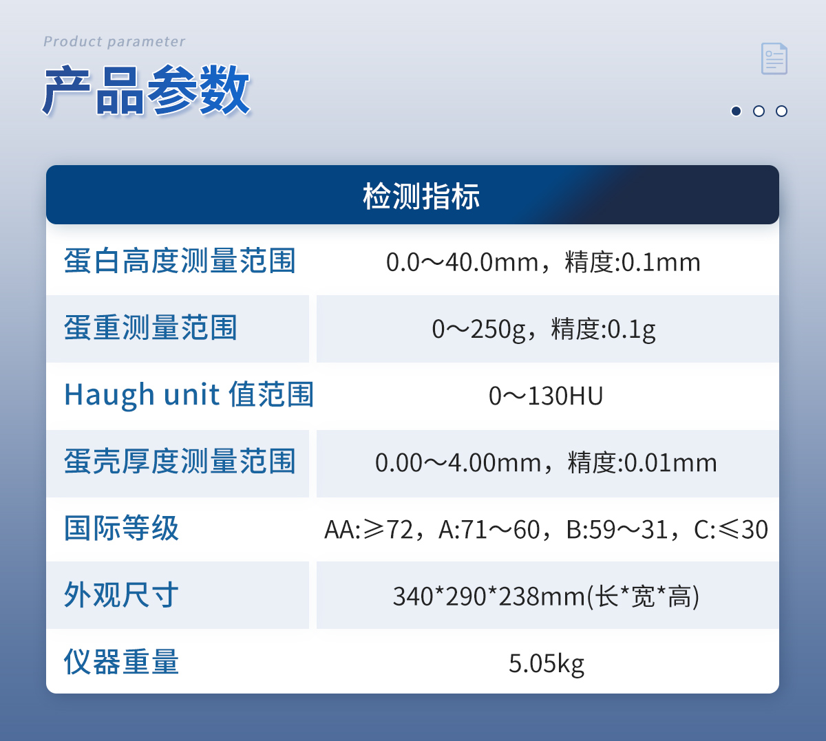 隨著消費者對食品安全問題的日益關(guān)注,雞蛋品質(zhì)檢測成為了保障雞蛋質(zhì)量、維護(hù)消費者健康權(quán)益的重要手段。我司生產(chǎn)的雞蛋品質(zhì)檢測儀可通過專業(yè)的檢測項目和方法,進(jìn)行雞蛋的品質(zhì)檢測和分析。