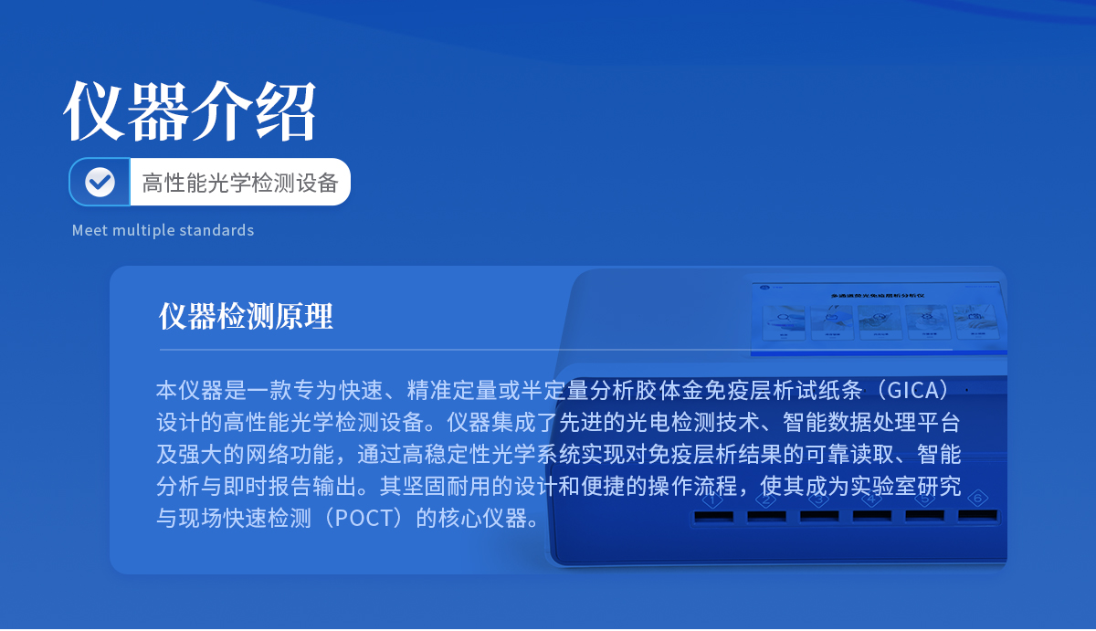 | 本儀器是一款分析膠體金免疫層析試紙條(GICA)設計的高性能光學檢測設備。儀器集成了**的光電檢測技術、智能數(shù)據(jù)處理平臺、高通量設計及強大的網(wǎng)絡功能,通過高穩(wěn)定性光學系統(tǒng)實現(xiàn)對免疫層析結果的可靠讀取、智能分析與即時報告輸出。其堅固耐用的設計和便捷的操作流程,使其成為實驗室研究與現(xiàn)場快速檢測(POCT)的核心儀器之一。 |