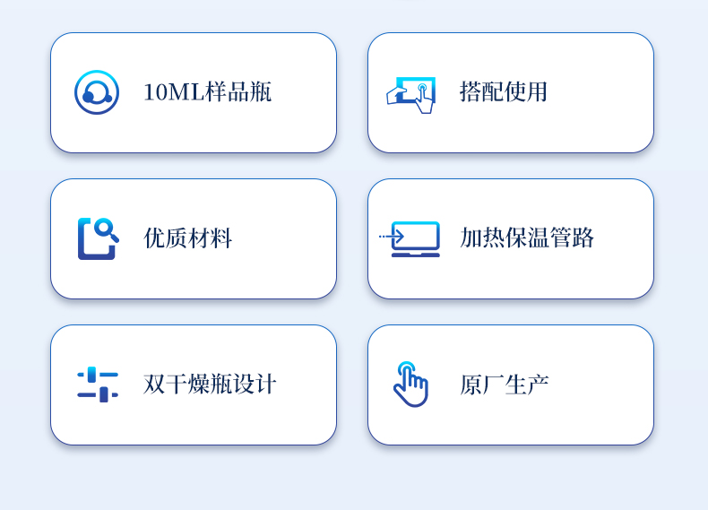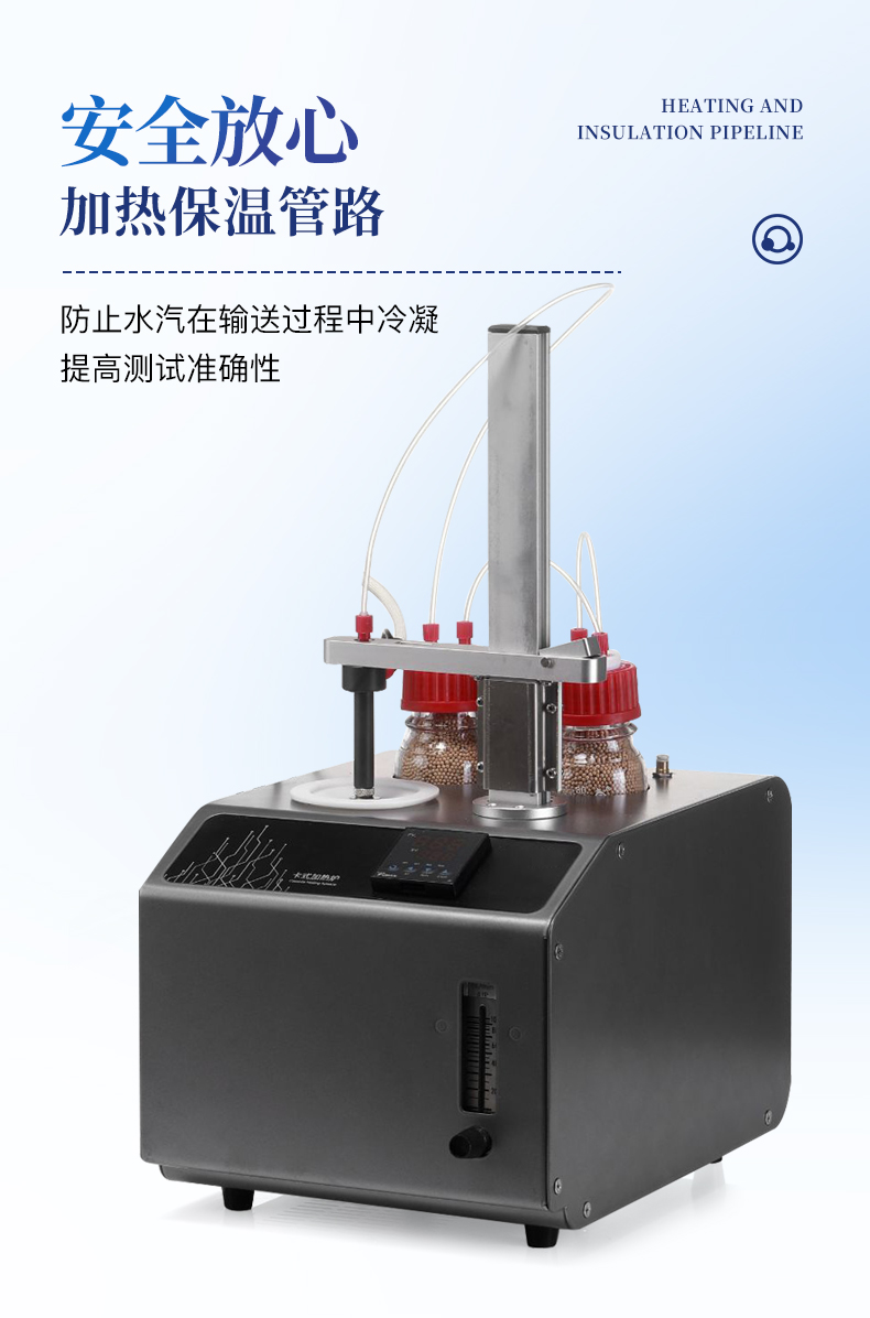 | 1、10ml樣品瓶:使用四氟與硅膠復(fù)合墊片,高溫條件下不會(huì)釋放可能產(chǎn)生副反應(yīng)的物質(zhì) | 2、雙干燥瓶設(shè)計(jì),有效降低氣源中的水分干擾 | 3、加熱保溫管路,防止水汽在輸送過程中冷凝,提高測試準(zhǔn)確性 |