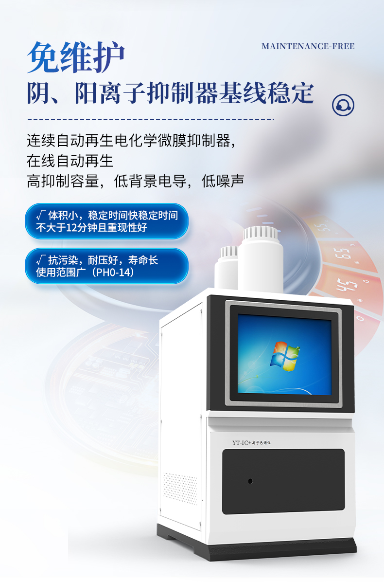 | 我們公司作為離子色譜儀器市場的新業(yè)態(tài),一直致力于為用戶提供更快捷、優(yōu)質(zhì)的儀器,以保障實驗室的建設和運行。始終堅持以客戶為中心,為有檢測需求的客戶服務。物美價廉、響應迅捷、服務全面。 | 全新一代離子色譜儀,采用12.1吋純平工控電腦一體機設計(用戶不需要配電腦),實時顯示儀器運行參數(shù)和狀態(tài);一鍵啟動電動閥進樣,一鍵完成儀器開關機、維護等操作,一鍵調(diào)閱儀器操作教程,方便快捷。 | 離子色譜儀核心零部件自主研發(fā)、自主知識產(chǎn)權可控。采用一體化設計,集離子色譜主機、淋洗液發(fā)生器、工控電腦、色譜工作站于一體,結構緊湊,流路*短,對流路造成的峰型擴展有很好的改善。一體化恒溫箱:色譜柱、抑制器、電導池、放大電路都處于同一恒溫系統(tǒng),改善了電導檢測器的溫飄和基線噪聲。內(nèi)置多處漏液報警器和缺水報警器,全方位安全監(jiān)控。由PLC控制的各個部件統(tǒng)一到電腦顯示屏的集中軟件控制系統(tǒng),操作方便,鼠標所見即所控。 |