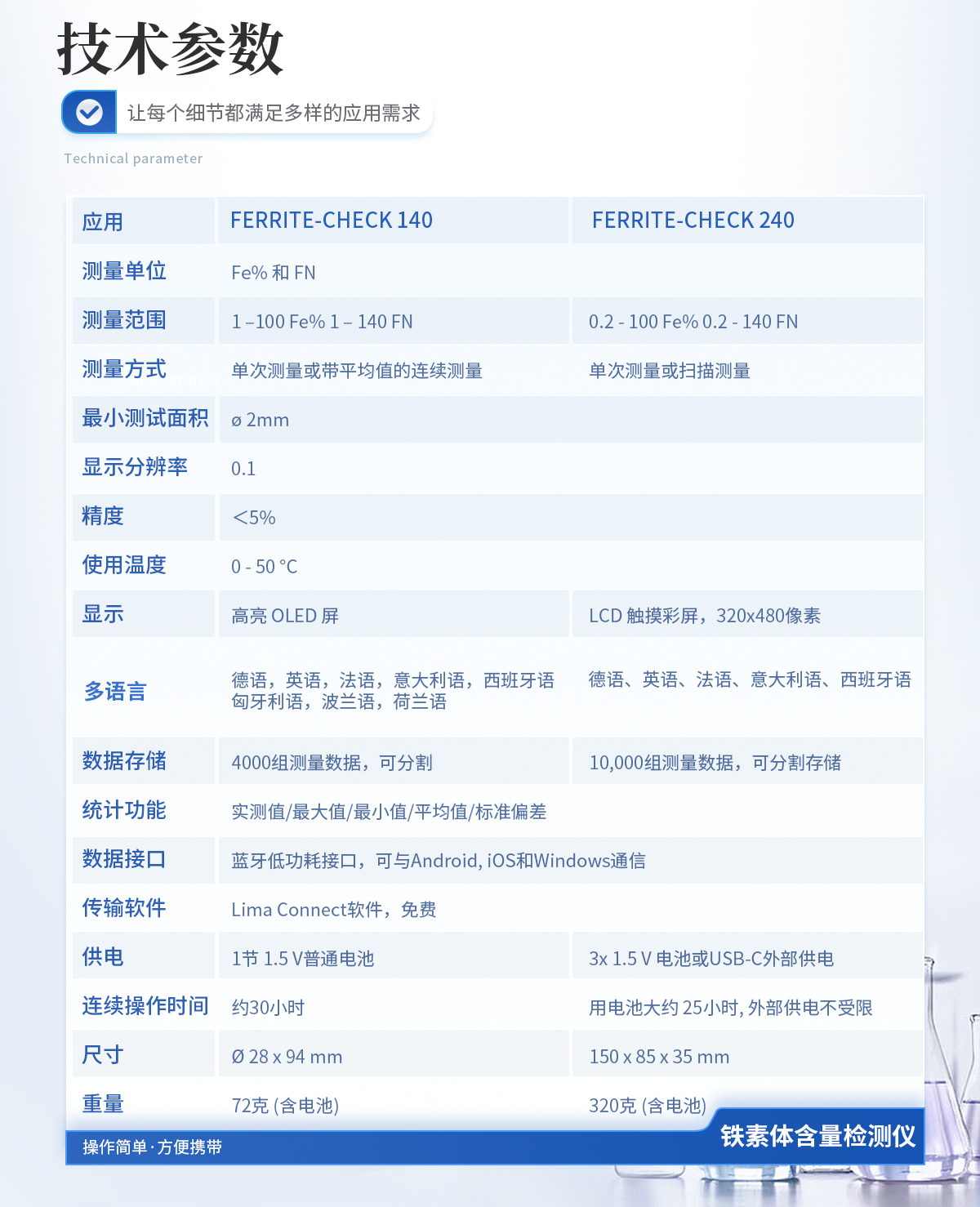 鐵素體含量檢測儀操作簡單 List-Magnetik公司 FERRITE-CHECK 140鐵素體含量檢測儀是一款設(shè)計緊湊、使用方便的便攜儀器,儀器配有集成探頭,儀器符合Basel標準DIN EN ISO 8249,使用磁感應法測量奧氏體鋼和雙相鋼中的鐵素體含量。 高亮OLED顯示鐵素體含量 FERRITE-CHECK 140鐵素體含量檢測儀只有一個按鈕,并配有多語言菜單導航,非常易于使用。高亮度OLED屏顯示FN或Fe%的測量結(jié)果。 測量焊縫中的鐵素體含量 特別是對于焊接的雙相鋼,重要的是要知道焊縫是否有足夠的鐵素體含量來保證焊縫的強度。鐵素體含量低的話,焊縫受熱后較容易產(chǎn)生裂紋,但如果鐵素體含量過高,焊縫的韌性和延展性將會喪失。 快速連續(xù)鐵素體含量測量 使用FERRITE-CHECK 140鐵素體含量檢測儀,可以非常準確和快速地測定鐵素體含量。檢測光滑或拋光表面上的焊縫時,可以將儀器切換到快速連續(xù)測量模式。當探頭放置在表面上并沿表面移動時,測量值將連續(xù)存儲,在提起探頭后,屏幕將顯示的*小值、**值和平均值組成的統(tǒng)計信息。 校準鐵素體含量檢測儀 FERRITE-CHECK 140鐵素體含量檢測儀配有3個校準標準片,可追溯到NIST 管理和發(fā)送測量數(shù)據(jù)與免費的應用程序 為了進一步處理測量數(shù)據(jù),您可以將FERRITE-CHECK 140鐵素體含量檢測儀與移動Android和iOS設(shè)備配對?;蛘吲c一臺Windows電腦通信。這是由低功耗藍牙技術(shù)(BLE)實現(xiàn)的。使用Lima Connect應用程序,您可以管理項目并在照片上分配測量點。測量結(jié)果可以統(tǒng)計評估和圖形顯示。這款應用適用于安卓、iOS和Windows系統(tǒng),軟件免費的。
