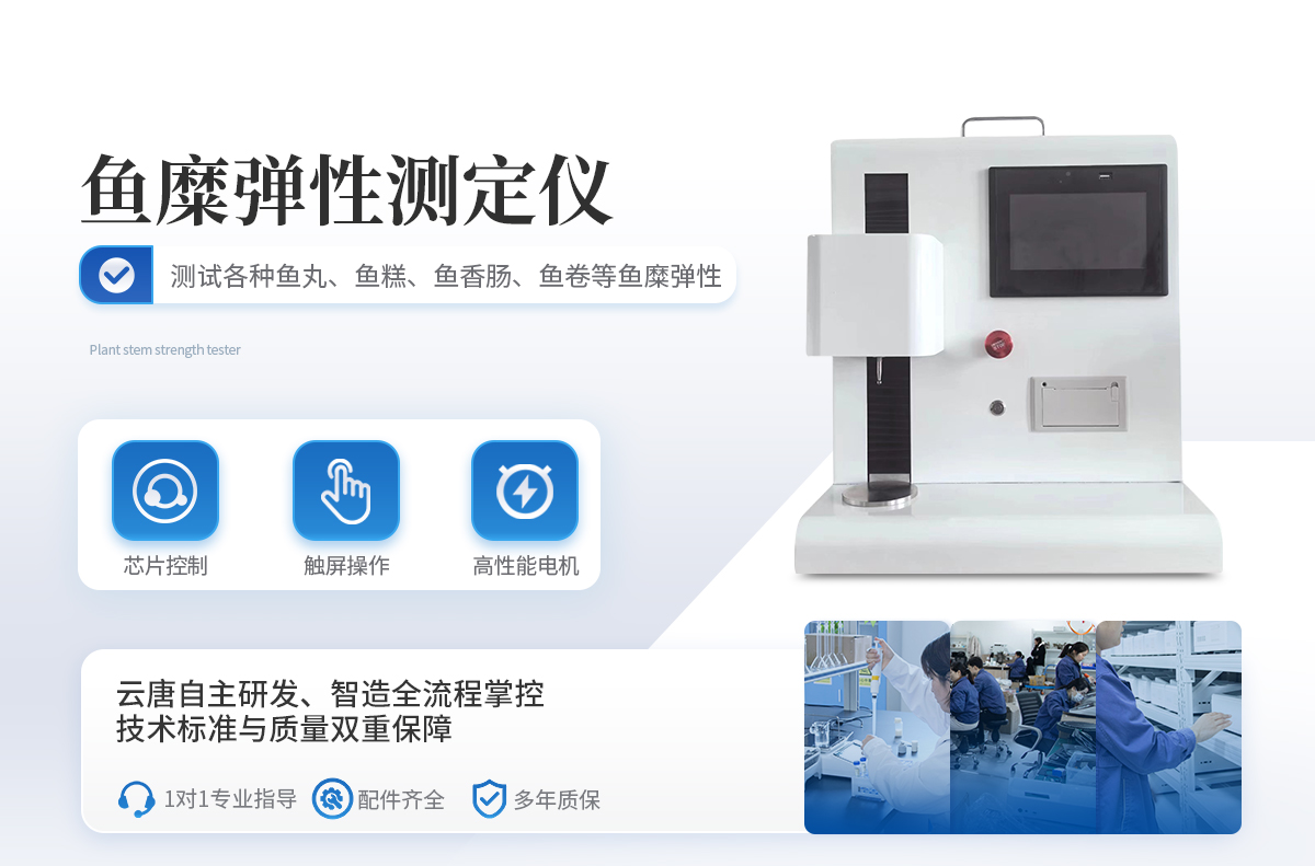 魚(yú)糜彈性測(cè)定儀是適用于各種魚(yú)丸、魚(yú)糕、魚(yú)香腸、魚(yú)卷等魚(yú)糜彈性的測(cè)試儀器。該機(jī)也叫質(zhì)構(gòu)儀,魚(yú)糜物性測(cè)試儀,魚(yú)糜凝膠強(qiáng)度測(cè)試儀 魚(yú)糜系以魚(yú)肉為原料,將魚(yú)肉粉碎,加食鹽、副原料等進(jìn)行擂潰,成粘稠的魚(yú)肉糊再成型后加熱,變成具有彈性的凝膠體, 魚(yú)糜彈性對(duì)一定形狀和尺寸魚(yú)糜制品的進(jìn)行抗拉伸、抗彎曲和抗剪切試驗(yàn),衡量魚(yú)糜質(zhì)量的一項(xiàng)重要指標(biāo)。 魚(yú)糜彈性測(cè)定儀滿足國(guó)家標(biāo)準(zhǔn)《GBT36187-2018冷凍魚(yú)糜凝膠強(qiáng)度測(cè)定》